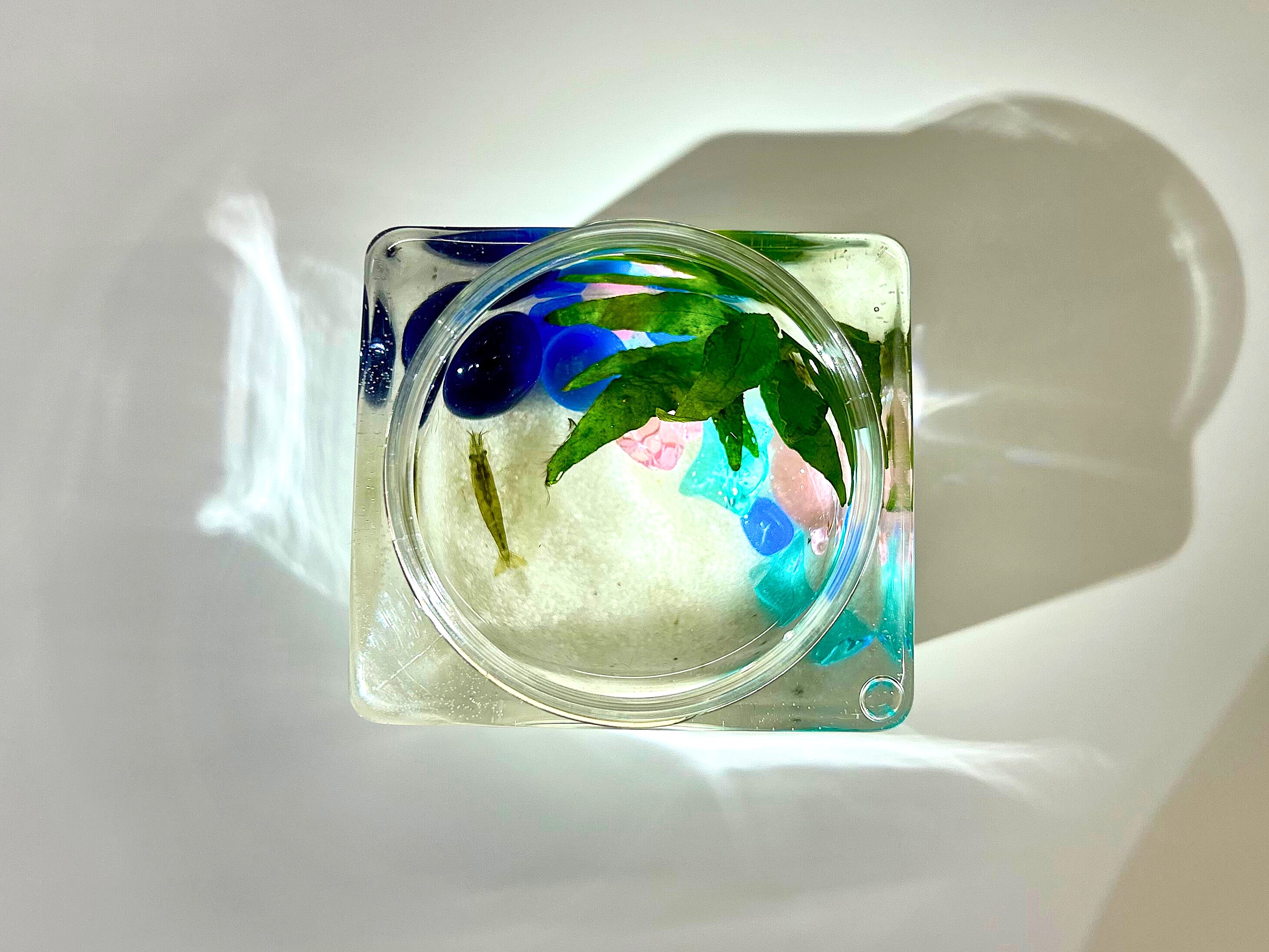 小さなボトルの中に、ビー玉やキラキラのパーツを入れて、世界に一つだけのエビのアクアリウムを作ろう!
