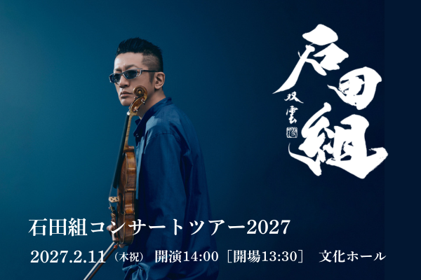 ヴァイオリニス ト⽯⽥泰尚の呼びかけにより 2014 年に結成された弦楽合奏団。プログラムによって様々な編成で演奏するスタイルをとっており、メンバーは石田が信頼を置いている首都圏の第一線で活躍するオーケストラメンバーを中心に公演ごとに組員が招集される。クラシックから映画⾳楽、ロック・ナンバーまでジャンルを超えた名曲が毎回違うメンバーにより熱演される⽯⽥組のコンサートは、まさに⼀期⼀会の⾳楽との出会いを味わうことができると全国各地で⼤⼈気。2023 年 8 ⽉のサントリーホール公演は追加公演含む 1 ⽇ 2 公演が即完。さらに追加された公演も完売し 2 ⽇間でのべ 6000⼈超という、クラシックでは異例の動員数を記録。結成10周年イヤーの2024 年 11 ⽉ 10 ⽇に念願の⽇本武道館公演にて 8300 ⼈の満員の観客を熱狂させた。2026年は10月11日に大阪城ホール公演を行う。