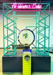 子どもがすっぽり入るくらいの大きさのリングでシャボン玉を作ることができます。